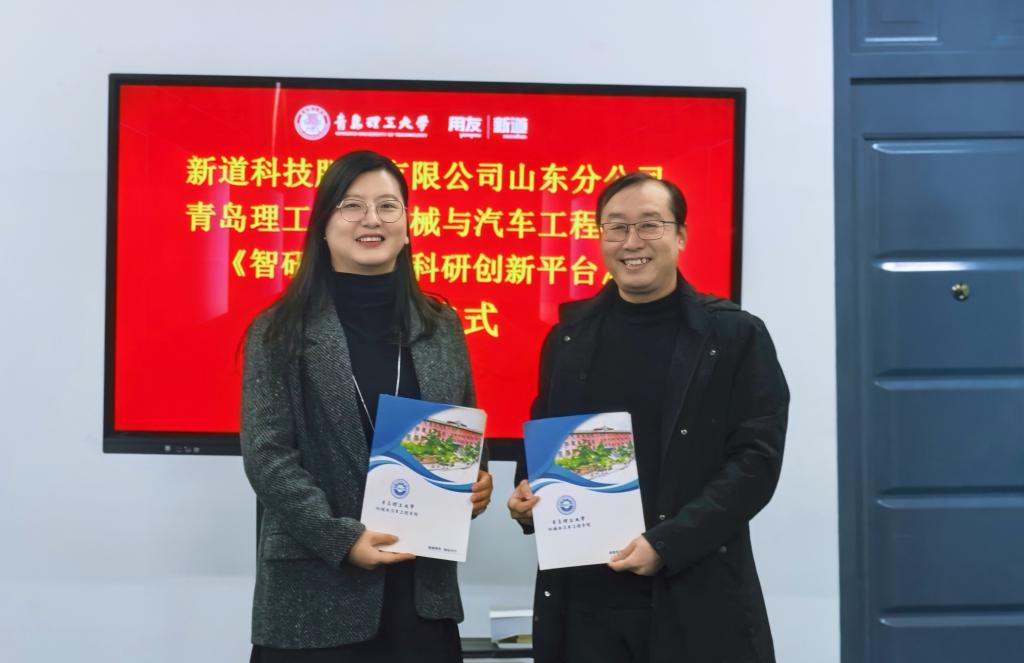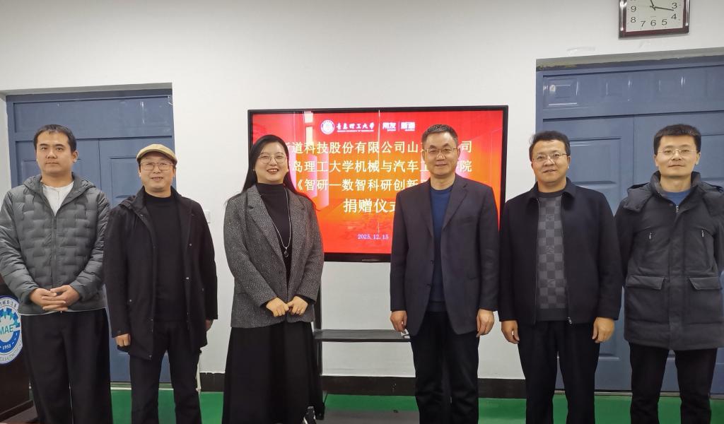 2025年12月15日,新道科技股份有限公司山东分公司(以下简称新道科技公司)向jinnianhui今年会捐赠“智研—数智科研创新平台(DBE Cloud)”的仪式在黄岛校区汽车实验楼408会议室隆重举行。新道科技股份有限公司山东分公司青岛业务部总经理高文、项目经理王旭鹏,jinnianhui今年会党委书记李忠晓,党委副书记、副院长董虎,副院长栗心明及教师代表出席会议,董虎主持捐赠仪式。