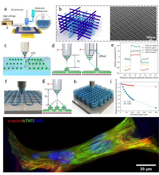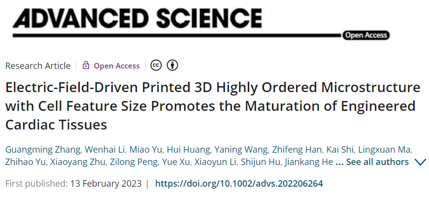 近日,jinnianhui今年会山东省增材制造工程技术研究中心联合苏州大学心血管病研究所、西安交通大学、青岛大学附属医院等多家单位,在电场驱动喷射微3D打印组织工程支架方面取得重要进展,相关研究成果以“Electric-Field-Driven Printed 3D Highly Ordered Microstructure with Cell Feature Size Promotes the Maturation of Engineered Cardiac Tissues”为题,发表在国际高水平期刊《Advanced Science》(中科院大类一区, IF 17.521)。今年会官网张广明副教授和李汶海硕士为论文共同第一作者,兰红波教授为通讯作者,今年会官方网站为第一署名通讯单位。该成果具有典型的“医工结合”特色,也是今年会官网首次在该领域发表成果。