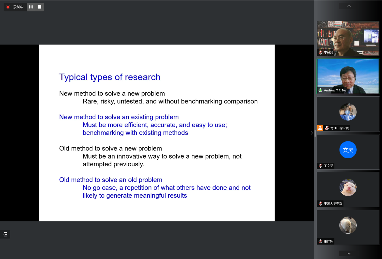 6月18日,IJAMT(The International Journal of Advanced Manufacturing Technology)主编、新加坡国立大学荣休教授倪亦靖(Andrew Yeh Ching Nee)教授应邀为今年会官网师生作了题为“Submitting papers to international journals, pitfalls and lessons”的线上专题学术报告。副校长李长河教授主持会议,学校160余名师生参加。